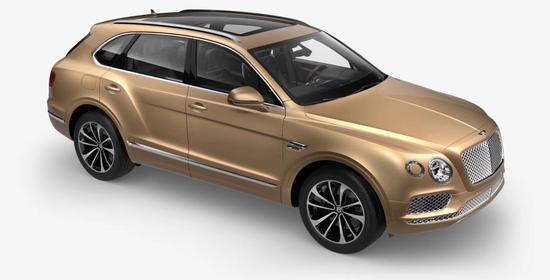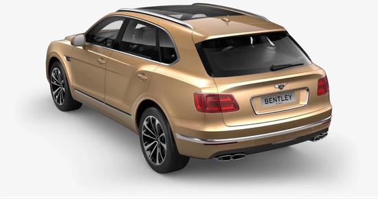 [选配]:特别定制外漆- 纯色漆/金属外漆,4座舒适座椅配置并配有后中控台,颜色配置,镀铬进气格栅及前防撞杆格栅,同色车身 (标配车漆系列)座椅刺绣宾利徽章,內部灯光调节,LED,后视镜迎宾照明灯,21英寸两件式5幅铝合金黑漆钻石旋转轮毂。
