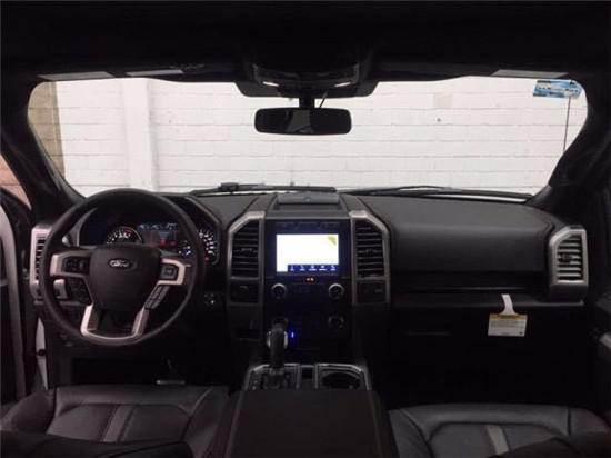 20款福特猛禽F150车内配备标准独特的皮革和布艺装饰的座椅,驾驶员侧的电动十向调节。这些座椅同时具备记忆功能。中央控制区搭配了触控式显示屏,其下方则是多媒体控制区及空调面板,采用旋钮+物理按键的组合。中控功能区域可分为三个小控制区,最上端为音响控制及导航控制,中间为收音机调节控制,最低端为空调及座椅加热控制。