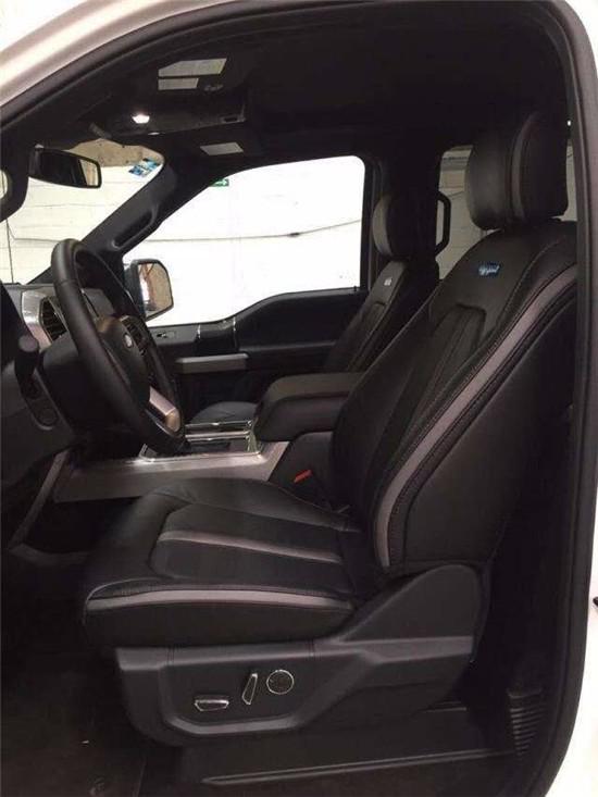 20款福特F150猛禽版本内饰增加了真皮座椅。福特猛禽F-150 表面颇具动感,内饰奢华,配置富厚,同时兼具跑车的动力机能、越野车的全地形制霸本领和豪华轿车的乘坐恬静性,并且它的改装空间也很大。车内配备标准独特的皮革和布艺装饰的座椅,驾驶员侧的电动十向调节。这些座椅同时具备记忆功能。中央控制区搭配了触控式显示屏,其下方则是多媒体控制区及空调面板,采用旋钮+物理按键的组合。
