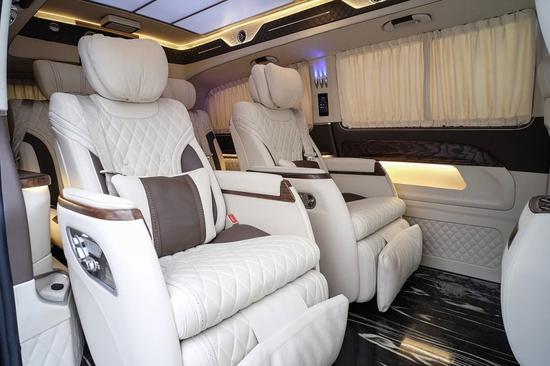 在中排座椅的遴选上更是一丝不苟,全新进口航空头等舱座椅,甄选最顶级的头层小牛皮包覆,手工缝线打孔工艺更是精细无比,菱形的走线纹路纹路让人在一瞬间以为是S级 (配置|询价)轿车附体,奔驰威霆VS680版座椅自带的通风加热,电动按摩更是不必再详细赘述,加大尺寸的座椅头枕更是能够让乘客在旅途中尽享豪华舒适。多向的座椅调节功能简直可以让出乘客在车内“为所欲为”