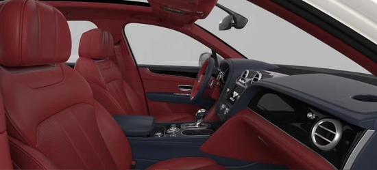 [选配]:4座舒适座椅配置并配有后中控台,颜色配置(双色内饰真皮内顶)同色车身 (标配车漆系列) 黑钢琴木面板,3辐式双色真皮镶边方向盘,座椅刺绣宾利徽章,急救箱和故障标志,內部灯光调节,21英寸两件式5幅铝合金黑漆钻石旋转轮毂。