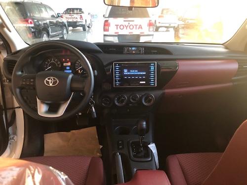 丰田海拉克斯皮卡2.7 GLX汽油版 中东版 白/红 6速手自一体 三气囊 多功能方向盘 行车电脑 17铝轮 /四驱分动 自动空调 后保险杠镀铬 踏板 彩条 电动镀铬后视镜 镀铬中网 雾灯 高级织物红色座椅 中央扶手 遥控钥匙 四门电窗 数字时钟丰田海拉克斯提供了真皮座椅、真皮多功能方向盘、中控台大尺寸触摸屏、蓝牙电话、导航系统、自动空调和后排出风口等,再加上重新设计的内饰风格和更好的做工,这款皮卡的内饰已经接丰田其它城市SUV的水准。丰田海拉克斯皮卡不仅对内部空间重新进行了精致的设计,整车的内饰也更趋于舒适化,内饰多了6.1英寸的彩色触控液晶屏以及高级音响。