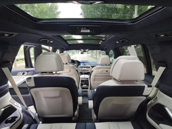 2020款宝马X7坐椅方面:X7标配7座座椅,2+3+2的布局,中间两个独立座椅是选装件(六座),在功能方面,全车座椅标配座椅加热,前排座椅可选装通风和按摩。第三排座椅也是电动调节。后排娱乐也是选装的,除了屏幕之外,后排娱乐系统还包括蓝牙DVD、两套独立耳机、HDMI接口,另外X7为第二排和第三排各设两个USB用于充电。四驱自动空调是X7的标准配置,可以选装五区空调,这样以来第三排乘客也能自己调节温度,十分周到。另外全新宝马X7有一套香氛系统,有8种气味可供选择。