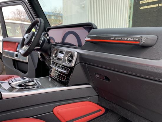 [内饰设计] 全新2020款奔驰G级63限量版的内饰极具现代感,中控台出风口、扬声器指示灯的造型与车灯相得益彰。而两块12.3英寸的显示器则让整个内饰氛围升华,还提供了经典、运动、渐进三种模式可选。舒适、科技配置也让人眼花缭乱,包含:驾驶员座椅记忆、前后座加热、多角度调节、座椅按摩(Active Multicontour座椅套装)、AMG多功能方向盘(可控制自适应巡航、语音控制、多媒体控制等)。