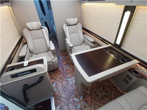 简洁又实用的高规格与尊贵舒适的豪华车规格一起构成了新款丰田考斯特的基础。车内座椅颜色的变化让内饰更具温馨感。高制冷可制冰的车载冰箱、舒适的航空座椅都可以让您在旅途中不再感到劳累。柯斯达(考斯特)车厢的后排座椅采用豪华沙发床设计,电动可调节,可放平,加宽加大加厚,沙发床底部加装减震功能,大大的增加了舒适性跟实用性!