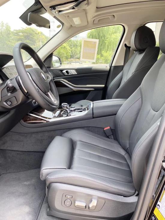 新款宝马X7外观方面,全新宝马X7不仅延续了宝马家族式的设计,也添加了不少全新的设计,车头宽大厚重,前脸标志性双肾型进气格栅做了加大处理,直瀑瀑型中网周围包裹宽大的饰条,不仅辨识度高攻击力也是非常强的,两侧连接大灯组,外观做了开眼角处理,上下两条LED日间行驶灯做了上下眼眉,两组大型的远光灯被箭头式造型勾勒,下面的进气口采用大嘴式设计嘴角连接L型雾灯区,有种嘴角上翘的而感觉,远远望去非常有威严。