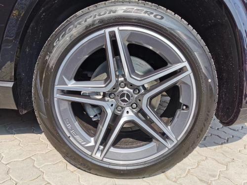 新一代GLE保持了车型沉稳的气场,粗壮的C柱设计,以及隐藏式D柱这两项车型经典元素,在全新奔驰GLE中得到保留。平直的腰线从下方划过,全新奔驰GLE风阻系数降至0.29Cd。新车轴距加长80mm,在同级别车型中不再落下风,同时也为车内第三排座椅提供了安放的空间,车身长宽高分别为4924/1947/1795mm,轴距2995mm。运动版车型采用了20寸双五幅轮毂,枪灰色表面还有AMG标志,匹配马轮胎,规格为275/50 R20。