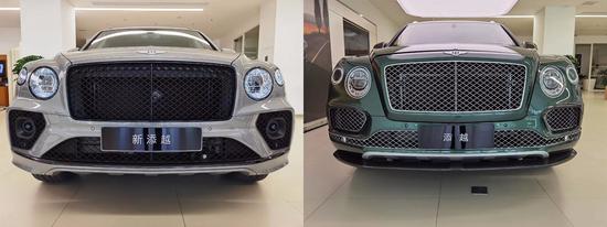 2021款宾利添越前脸大灯部分改动明显,采用全新家族设计方案,大灯组为LED钻石切割矩阵式大灯。