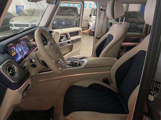 20款墨版G500 时光铭刻版颜色:灰/蓝米 6919 20寸多辐轮,4.0T,V8,9速,天窗,前排真皮座椅通风加热按摩,后座椅加热,全液晶仪表,几何多光束大灯,LED日行灯,64色氛围灯,自动空调,柏林之声音响,三把差速锁,前后电眼,雷达测距,并道辅助,脚踏,后视镜电动折叠,多功能方向盘(蓝牙,定速巡航,换挡拨片)360°环车影像,暗夜套件(熏黑大灯、前转向灯、后备箱罩等)金属纤维内饰。