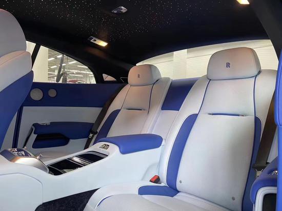 这台魅影Black Badge的车顶蒙层还配备了劳斯莱斯的星光顶棚,是由1340根独立光导纤维手工编织而成,每颗“星星”都可调节,以营造不同的氛围,而且该选装配置也有私人订制项目,根据客户需求可以定制各样效果的星空顶,以满足不同客户天马星空的想象力。