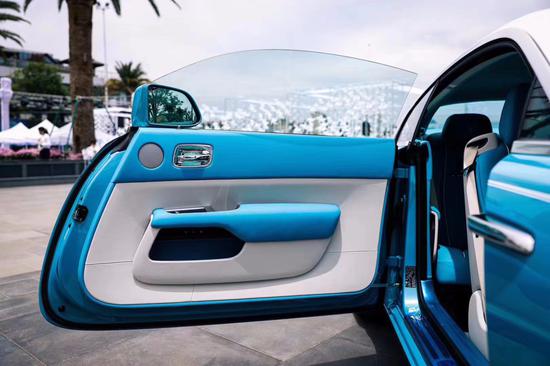 劳斯莱斯家族所有车型均采用经典设计比例,车轮高度与整车高度的比例为1:2,这是劳斯莱斯美学中最完美的分配比例。马车式车门一直是劳斯莱斯的专利和身份的象征。但它所展示的高贵与其他劳斯莱斯都有所不同,在庄重之余,变得越来越好玩和有趣了,让人对高贵多了几分新的认识,原来有一种高贵也可以那么动感。
