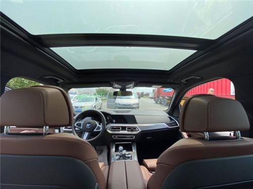 2020款新一代宝马X5内饰设计更高档,采用三辐式多功能方向盘设计,仪表盘跟宝马X7基本一致,采用无框后视镜设计,中控台底部还配备了无线充电功能。2019款新一代宝马X5中控功能键盘也重新设计,中控出风口中间还配备了一块小尺寸液晶屏,上面显示一些空调温度和风量。出风口两侧的风量滑轮更精致。2020款新一代宝马X5可选配全景天窗,以及Sky Lounge LED照明灯,采用玻璃天窗材料。