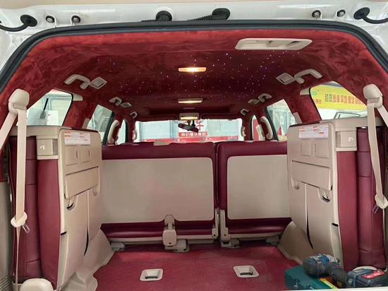 酷路泽改装gt轮毂 gts包围 黑武士套件 酒红色真皮座椅 酒红色鹿皮顶 满天星星空顶 电动尾门 卡士达一体机 自动大灯 自动雨刷 整车隔音 底盘护板