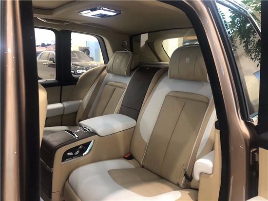 劳斯莱斯库里南整体尺寸为长宽高5341/2164/1835mm,轴距3295mm,整体远大于宾利添越 (配置|询价)与路虎揽胜 (配置|询价)长轴距版,因此乘坐空间方面表现得很不错。后排中央扶手的实木饰板后面设置了两个杯架,可以放置两个香槟杯,整个设计非常有档次感。前排中央扶手内则设置了一个小冰箱,内部空间比较大,可以放置一瓶香槟和两个酒杯。