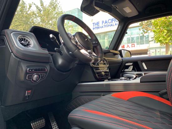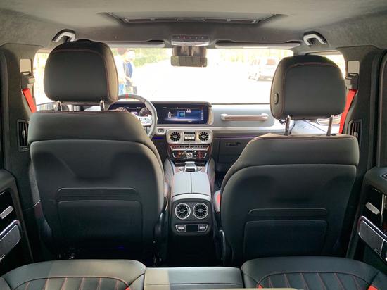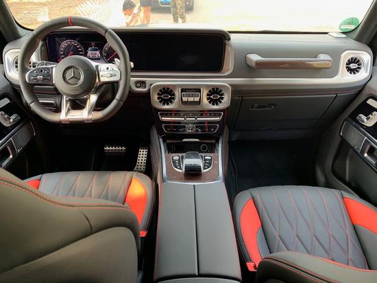 全新奔驰G63内饰方面,保留了新G系的整体设计,除配色差异外,新车还换装了全新造型的平底式AMG运动方向盘,其两侧配以打孔皮质包裹,下部镀铬装饰的造型也与新G500明显不同,看上去十分战斗。此外,全液晶仪表盘+中控大屏的双12.3英寸屏幕设计在新车上也没有缺席,营造出了浓郁的科技感。