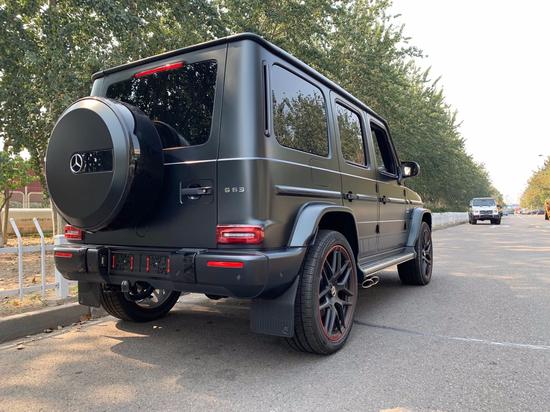 车尾,后挂设计直观彰显它的越野地位,两侧的小标志则直观显示了这款车的车型身份。矩形的红色尾灯与方正的车身造型形成呼应,点亮后的辨识度非常不错。有着AMG性能排气系统,带来更刺激的声浪体验。同时它还带有AMG控制自适应阻尼架,让它有着更好的通过性。