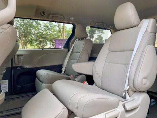 20款丰田塞纳内部空间非常大,充分发挥了MPV的优势。 座椅全部采用双色真皮,第二排座椅的腿部支撑,放倒第三排座椅,加上腿部支撑,完全变成了两张摇篮床,让长途旅行多了一份舒适。宽敞舒适后座空间,配上该车安全稳定的行驶系统,保证途中也能舒适地谈上生意。