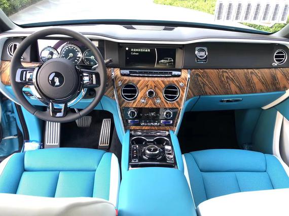 劳斯莱斯库里南内饰大量实木饰板的采用,提升了内饰的档次感。而大面积真皮包裹的设计,则成功的营造出奢华舒适的内饰氛围。仪表盘的设计较为古朴,内部指针清晰可见,外圈还配备有劳斯莱斯珠宝般的装饰环。方向盘沿用了经典的三辐式造型,但是整体设计更加小巧、厚实,并且内部包裹有可加热的柔软材质。