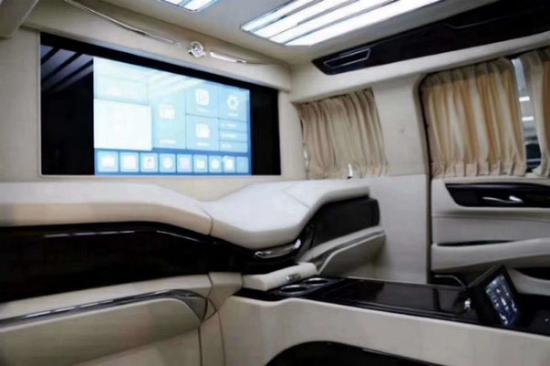 凯迪拉克总统一号隐藏六座整个后舱为四座设计,两个主座为至尊豪华真皮头等舱座椅式样,且带腿部支撑和电动按摩加热功能,四座椅头枕处均印有凯迪拉克标识。主座椅中央扶手处还设有控制台,让您置身舒适的座椅不必起身就可操控车内设备,相当人性化。无论在你前往何处的旅程中,都能营造恰如其分的氛围。从此行宫环境不再枯燥单一,而是更富有色彩。触觉源自指尖,却感于心间。来自美洲的高级真皮包裹座椅,呈现前所未有的舒适坐姿,配合精细的手工缝线,从细节处全方位展现汽车内饰的惊艳之享,即使在长途旅程中,也会爱上这种舒适感受,为了营造VIP奢华的氛围,采用了前后隔断设计,隔断处安放了一台32寸可升降液晶电视,这样子在后舱的乘客就可以随时欣赏丰富的电视节目。