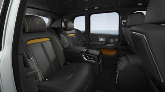 劳斯莱斯库里南中控面板的边框由手工打磨的金属条包裹。上部仪表板采用全新研发的现代“方格粒纹”黑色真皮包裹李冰冰。座椅采用简洁而现代的马蹄铁图案,强调座椅的支撑力。整个椅背由一整张皮料塑形,打造出极为立体的表面。劳斯莱斯库里南仪表盘的设计较为古朴,内部指针清晰可见,外圈还配备有劳斯莱斯珠宝般的装饰环。 方向盘沿用了经典的三辐式造型,但是整体设计更加小巧、厚实,并且内部包裹有可加热的柔软材质。