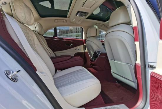 配置:宾利飞轨V8 S · 带后座中间长廊隔断* 4个座椅* 20英寸合金轮毂*红色卡钳*分开的中央扶手前电动座椅的调节*前后座椅加热和加热* 前后座椅通风和按摩功能*后视摄像头*无钥匙进入