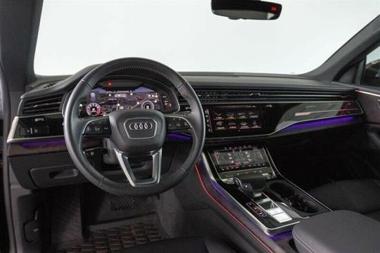 进入车厢内部,会感觉奥迪Q8和全新A8 (配置|询价)的设计高度雷同。奥迪全新家族化设计,科技感十足的虚拟驾驶舱氛围,同样的三块大屏,横向贯穿的前排空调出风口。中控台采用大面积的真皮包覆,且向驾驶员一侧倾斜,形成以驾驶员为中心的驾驶舱。整个中控采用了全触屏来对车辆进行操控,没有一个实体按键,对技术要求极高,非常的高大上。