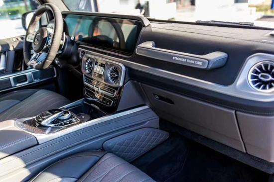 全新20款奔驰G级 (配置|询价)63限量版的内饰极具现代感,中控台出风口、扬声器指示灯的造型与车灯相得益彰。而两块12.3英寸的显示器则让整个内饰氛围升华,还提供了经典、运动、渐进三种模式可选。舒适、科技配置也让人眼花缭乱,包含:驾驶员座椅记忆、前后座加热、多角度调节、座椅按摩(Active Multicontour座椅套装)、AMG多功能方向盘(可控制自适应巡航、语音控制、多媒体控制等)。