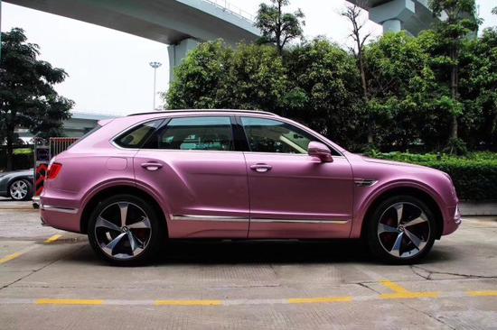 20款宾利添越4.0粉色车身大量使用了轻量化的铝合金材料,从而有效的控制了整车重量,这让其当之无愧的成为世界上最 豪华、性能最强、速度最快的顶级奢华SUV。雄浑的运动性能与SUV天生的豪迈气度相辅相成,车身每一处都诠释着沉稳大气的贵族气息