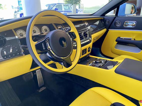 劳斯莱斯魅影中控与古斯特完全相同,计十分古朴,顶级材料与精致手工搭配出了顶级豪华车才有的氛围,凡是能触及的地方均有皮质或实木覆盖。三辐皮质包裹方向盘的盘辐较大,设计精致复古,并带有4向电动调节,调节更加精准,行车电脑信息可通过左侧拨杆切换,操作较为简单,整体给人一种沉稳扎实的感觉。