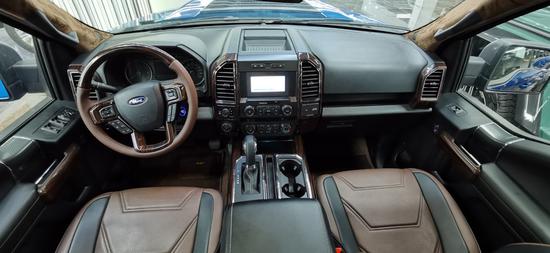 20款福特猛禽F150内饰采用独特的中控台和门饰板面漆和真皮包裹的方向盘。中控台部分辅以银色饰板装饰,六指针仪表盘的设计有些后工业时代的复古风格。采用带电冷热功能的可记忆式皮革座椅,头枕四向可调,搭配铝饰条和黑色钢琴烤漆内饰。