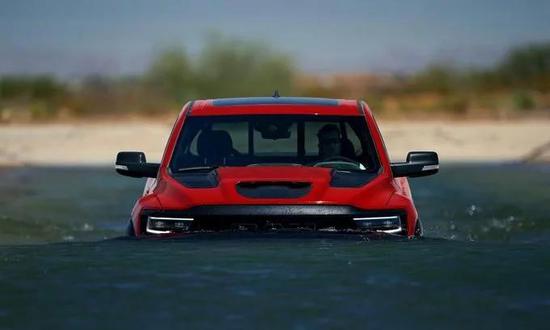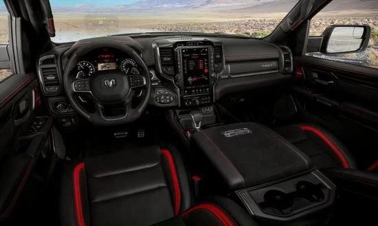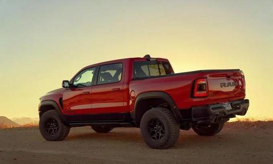 当然了,作为皮卡车型,除了动力性能方面,越野性能也不能少,毕竟想要与F-150猛禽扳手腕,光是跑得快可不行,所以在越野配置上,Ram 1500 TRX配备自Bilstein自适应减振器,可支持连续调节阻尼力,以实现最佳的车身控制和地形隔离,因此可以提供最大11.8英寸(约合30厘米)的离地间隙,由此,可以为该车提供30.2度的接近角,23.5度的离去角以及21.9度的通过角,同时涉水高度为32英寸(约合81.28厘米)。