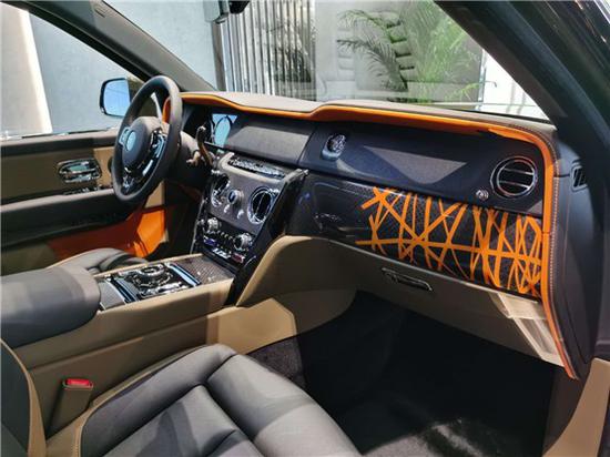 定制配置如下;前排乘客手套箱部位-鸟巢图案*头枕刺绣鸟巢图案*扬声器及时钟表面-深色PVD物理气相沉积*内饰真皮细节-深橄榄绿Dark Olive/ 双色揽景座椅*揽景座椅-座椅部位黑色Black*22寸部分抛光BB轮毂*暗黑欢庆女神*BB科技碳纤维*发光迎宾踏板*车门电动外侧关闭*对比缝线-橘色*RR头枕刺绣-橘色*前排按摩座椅*羊羔毛脚垫*全景天窗*餐桌*门板欢庆女神浮雕*全客户定制皮革*单长腰线-橘色*外部不锈钢套件*后排中央固定2座独立座椅[包含配置;后排座椅按摩*后备箱隔屏玻璃*电动可调节座椅*香槟冰箱含俩香槟杯*威士忌酒柜含两个威士忌杯*香槟及威士忌杯托*无线充电基座*12V电源X2*无线充电]*前排座椅通风*车顶延长皮革*科技CC定制时钟*劳斯莱斯定制音响*后排娱乐系统*内部抛光套件*定制钥匙-黑色。