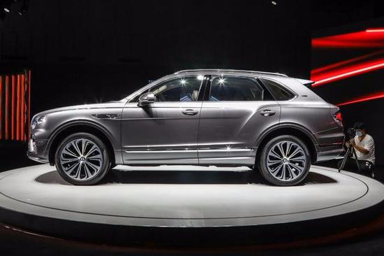 全新宾利添越侧面线条相比起老款车型更硬朗了一些,运用了不少肌肉感十足的硬线条。官方称后轮轮距增加了20mm,使得其车轮在轮眉下的位置得以调整,以优化车辆的动态表现以及视觉效果。此外,添越还首次引入具备加热及清洁功能的风挡雨刷器,每个雨刷器配备22个清洗喷嘴。