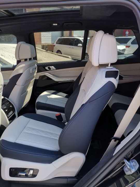 2020款宝马X7融入最新家族式设计元素,内饰大部分区域由银色饰条及木质面板加以点缀,配备带有注意力监测的液晶仪表盘及全新的三辐式多功能方向盘,中控区域为悬浮式触控显示屏,下方为空调出风口与实体功能按键,杯架处还加入可为饮品制冷或加热的功能,换装全新的水晶电子档把。除此之外,新车还配备了Vernasca皮革内饰,四区气候控制系统及三段式全景天窗。