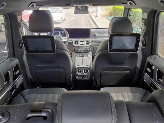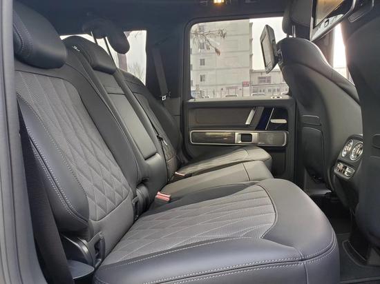 20款奔驰G63AMG档次、质感和科技配置都明显提升全新奔驰G级的内饰相比老款有了明显的提升,采用了奔驰最新的双屏幕式设计,全液晶仪表盘和中控台屏幕都达到12.3英寸,同时内饰质感和工艺都有了很大的进步。中控涡扇式空调出风口也颇具设计感,车内的高档皮革内饰以及标有V12钻石图案设计的座椅、车门面板和脚垫,无不彰显着车主的尊贵身份。