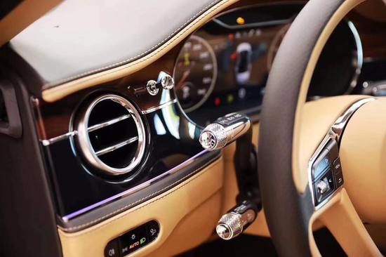 20款宾利旋转显示屏让您创新科技让您畅享非凡旅程。它隐匿于精美的仪表板饰面后,在发动车辆时,仪表板饰面会旋转,显露出数字显示屏,您可以使用其中的App、媒体和查看车辆信息。再次转动显示屏,显示出三个经典模拟表盘,周边镶嵌有珠宝般璀璨的镀铬边框。您可根据需求,通过旋转操作来开关显示屏。