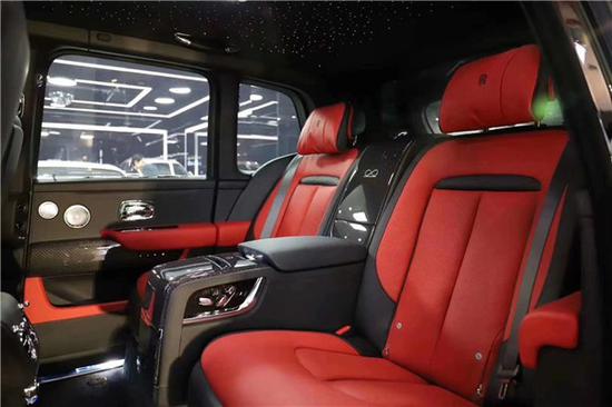 【颜色】钻石黑/橙-黑色【木饰】碳纤维面板 【选配】22寸BB锻造铝合金轮毂,红色制动卡钳,车门电动外侧关闭,座椅缝线,座椅滚边,RR头枕刺绣,LED BB发光迎宾踏板,羊羔毛脚垫,前后座椅按摩+前后座椅通风(含冰箱及酒柜),定制内饰设计,门板浮雕-欢庆女神,仪表台缝线,车身单腰线(橙),后排野餐桌,风格钥匙,流星顶(星空顶)