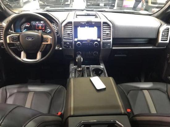 福特猛禽F150内饰采用独特的中控台和门饰板面漆和真皮包裹的方向盘。中控台部分辅以银色饰板装饰,六指针仪表盘的设计有些后工业时代的复古风格。采用带电冷热功能的可记忆式皮革座椅,头枕四向可调,搭配铝饰条和黑色钢琴烤漆内饰。可电动升降的后窗带隔板和电热除霜功能。
