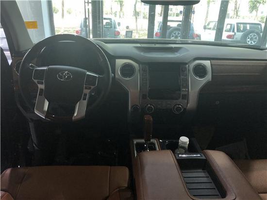丰田坦途的内饰设计风格感觉比较熟悉,依旧是宽大的中控台搭配各种大尺寸按键、旋钮的组合,配色方面采用深灰色与浅灰色搭配为主,可以很清楚的发现驾驶员一侧的色调以浅色调为主,作为一款皮卡,坦途内饰的用料和做工明显有过于“豪放”之嫌,中控台大面积的硬塑料材质说明它还是一款实用性至上的车型。