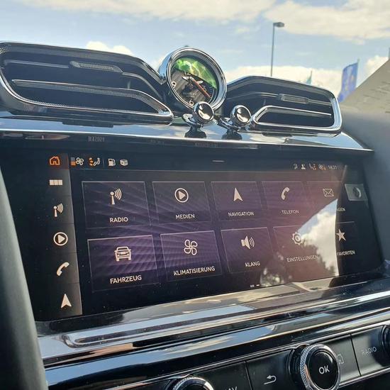 21款宾利添越4.0内饰设计有浓郁的宾利风格,新车配备了全新样式的三辐式多功能方向盘,整体质感良好,中控台中央悬浮式液晶屏设计,上方圆形出风口是宾利独有的“牛眼式”出风口设计。新款宾利添越内饰几乎全部被顶级的牛皮包裹,而且全部是由技术优异的工匠纯手工打造,辅以少量的木纹和金属装饰,华贵至极。