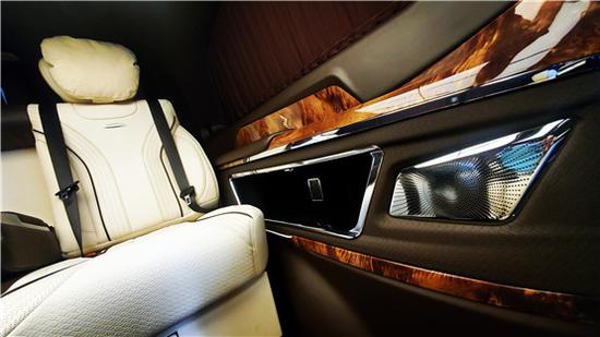 贵宾舱以素雅白外主色,搭配稳重的蓝色,大气而干净稳重,不多一丝繁杂的装饰。车体以臻选的鹿茸皮包覆,豪华程度媲美迈巴赫的车顶的以极简的四方造型展现,展显出LESSISMORE的非凡追求与品味。及美国CROWN音响典雅高贵,还原纯粹的原音。