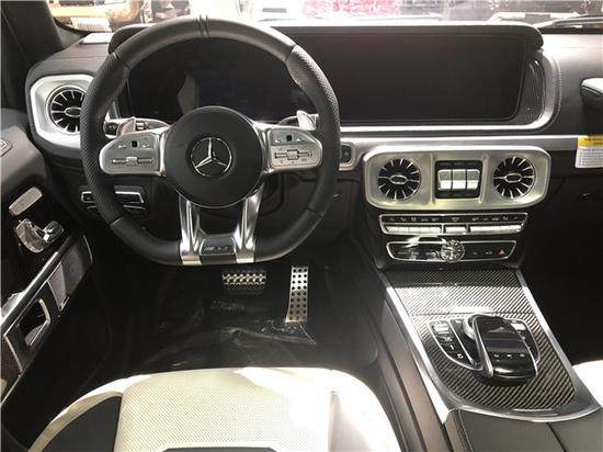 2020款全新G63内饰方面,新G63保留了新G500的整体设计,除配色差异外,新车还换装了全新造型的平底式AMG运动方向盘,其两侧配以打孔皮质包裹,下部镀铬装饰的造型也与新G 500明显不同,看上去十分战斗。此外,全液晶仪表盘+中控大屏的双12.3英寸屏幕设计在新车上也没有缺席,营造出了浓郁的科技感。