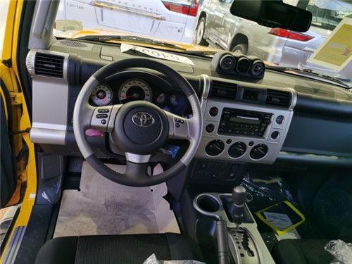 20款丰田FJ酷路泽 的车厢内充满了硬派越野车的风格。方正的中控台,上下两边还设计有圆柱的元素。中控台按键周围的面板采用了与车身同色的面板,左右两边辅以银色条装饰,看上去非常精致。