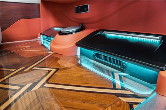 二排脚踏自带氛围灯,地板采用欧式拼花地板,精美耐用,更显奔驰V260傲旋大白鲨带来的尊贵气息。