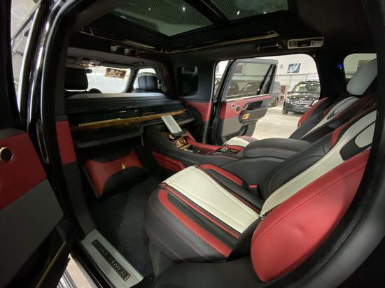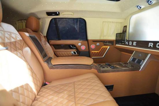 路虎皇家一号加长版5.98米进口路虎皇家一号采纳最新的车身和底盘手艺,不管是其越野本领的广度和可经过性,高速公路的操控性和路噪,车辆的全地形机能被晋升到另外一个层面。全景天窗下,隔屏吧台搭载三星32寸液晶升降电 视,MERIDIAN英国之宝环绕音响,秉承着高贵与简洁的设计宗旨,清晰重现各种声音,其品质可见出类拔萃。