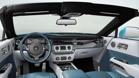 虽然它是两门,但是还保存了对开门非常有仪式感的开门方式,打开车门之后,首先映入眼帘的就是非常赞的皮质座椅,传说中就是全世界最顶级的皮料商都是首先把这个皮子贡献给劳斯莱斯,让他们先选。传说中的劳斯莱斯的雨伞,这个门有一个按钮关就可以了,整个内饰给我最大的感觉,就俩字复古。方向盘设计是一个吸附的方向盘,另外,它的仪表盘是由三个黑白搭配超级经典的复古颜色构成的,所以整个给你直观的感觉看上去就特别像开以前的老爷车。