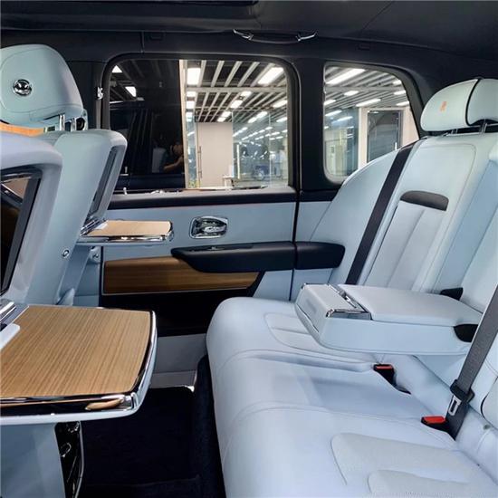 配置;8速自动变速箱 四轮驱动 双涡轮增压6.75L,V12 可升降底盘 黑羔羊毛后备箱衬垫 360环车影像 四门电动关闭功能 后车门内置雨伞 车载蓝牙系统 警示三角牌 电视信号系统 电动升降欢庆女神 羊羔毛脚垫 外部电动关门 22寸全抛光轮毂 后排影院系统 劳斯莱斯定制音响 全景天窗 Bespoke特殊定制内部氛围设计 后排野餐桌 座椅滚边-黑色 对比缝线-黑色 RR枕头刺绣-黑色 前排座椅按摩 后排独立座椅(含后排座椅按摩,后备箱多功能接口)前后排座椅通风。