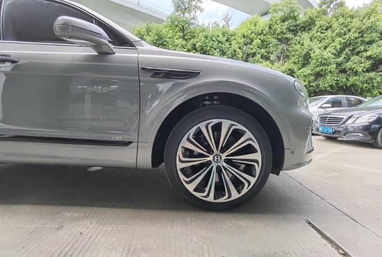 全新宾利添越侧面线条相比起老款车型更硬朗了一些,运用了不少肌肉感十足的硬线条。官方称后轮轮距增加了20mm,使得其车轮在轮眉下的位置得以调整,以优化车辆的动态表现以及视觉效果。此外,添越还首次引入具备加热及清洁功能的风挡雨刷器,每个雨刷器配备22个清洗喷嘴。