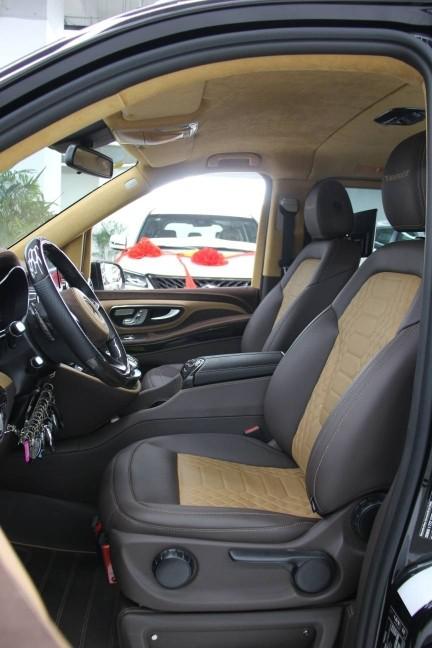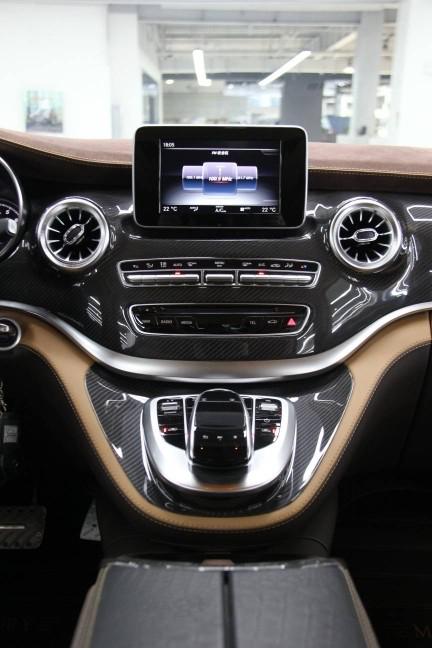 奔驰V250的后舱是老板们绝佳的享受之地。整个车厢用意大利进口Alcantara翻毛皮与带有精致缝线的真皮包裹,航空舱式金色氛围灯,烘托出奢华的车厢氛围。匠心的选材,为乘坐者甄选出黑黄檀木的装饰,纹路与触感实属上乘之作。后舱是一个舒适之地,两张航空座椅规格之高超越迈巴赫,座椅用的是非洲肯尼亚鸵鸟皮,优点拉伸度好,是牛皮3-5倍,耐磨度也非常好,更拥有超长腿托,多向调节、电动按摩、座椅加热通风等功能。真皮用的是意大利NAPPA小牛皮。