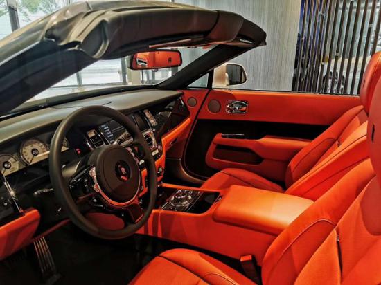 2020款国六跑车软顶的曜影可谓是劳斯莱斯家族中的闪耀公主它的多色搭配私人订制,劳斯莱斯对皮质的选择极端苛刻,他们只用欧洲牛,而且最好是高海拔地区,牛很少生虫,不会被栅栏刮伤,从而保证真皮的品质,大概需要450块不同部位的牛皮才能制作一台曜影。